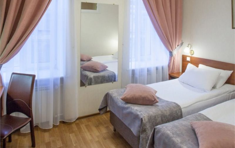 Самолетом до аэропорта Пулково (г. Санкт-Петербург), далее на автобусе №39Э до остановки «ст. м. Московская», далее на метро до станции «Площадь Восстания», далее пройти 1,4 км до отеля.